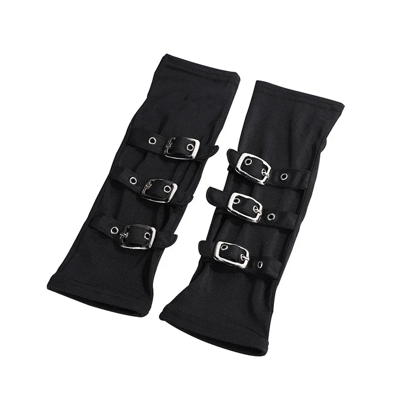 Dark Gothic Metal Buckle Half Open Finger Wristband Gloves Wrist Strap Arm Warmer Punk Cosplay Halloween Costume Accessories - www.sixcolors.us