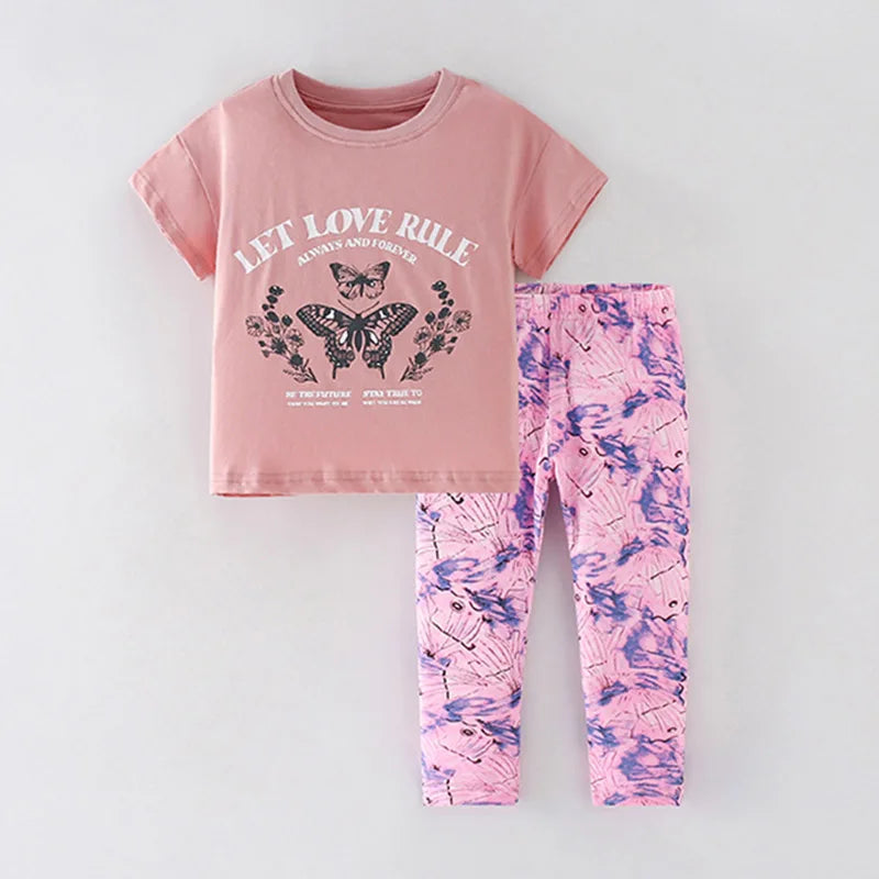 Kids Girls Children‘s Clothing Suits 2024 Summer 100% Combed Cotton t-shirt Leggings Pants Outfits Casual Baby Girl Clothes Sets