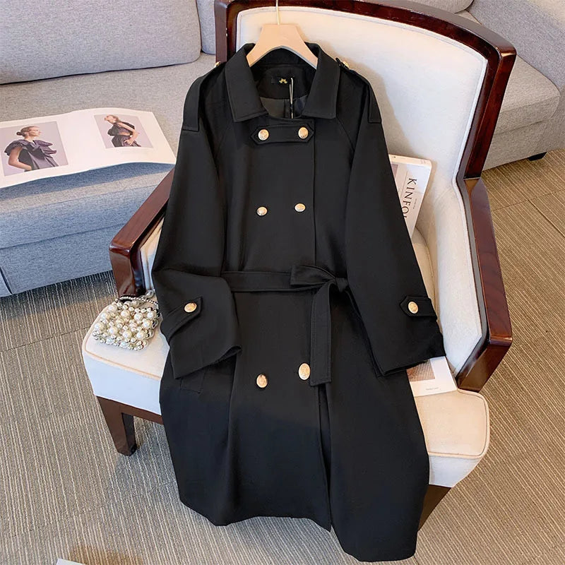 Plus Size Women Coats and Jackets Autumn Mid Length Trench Coat Korean Fashion Winter Clothes Women Belt Trench Coat 9xl 10xl