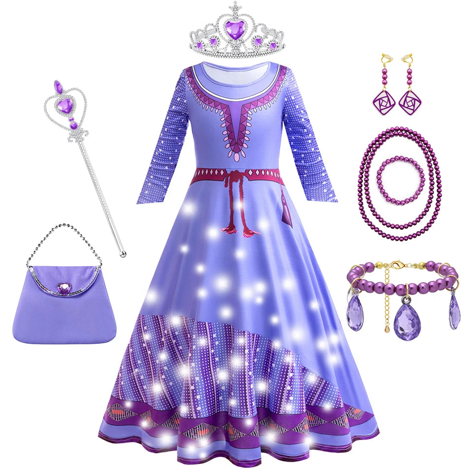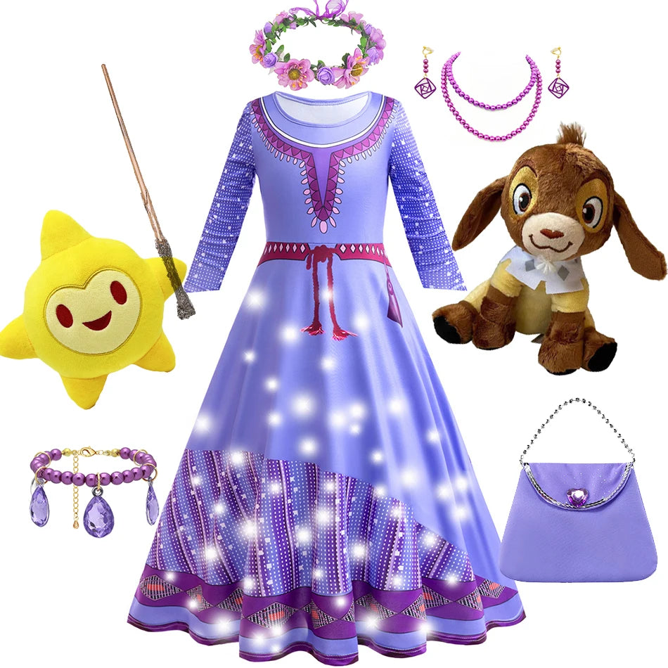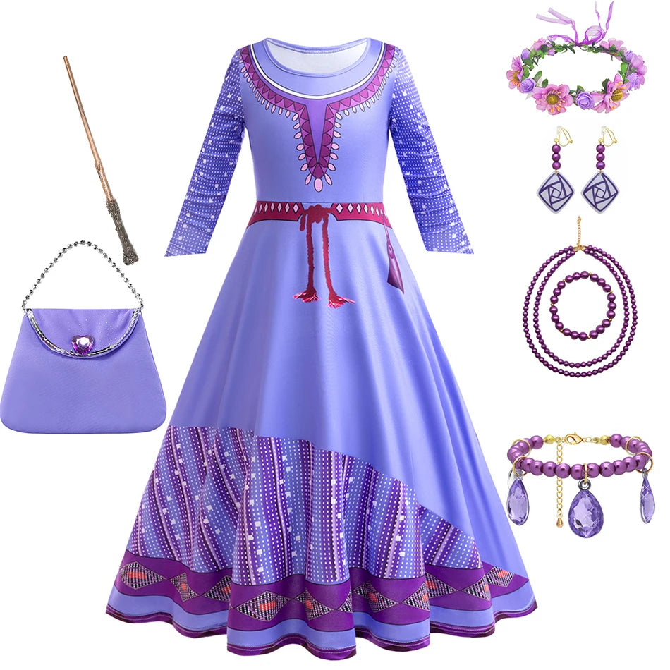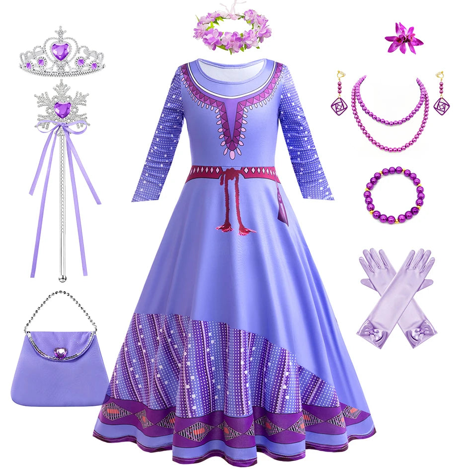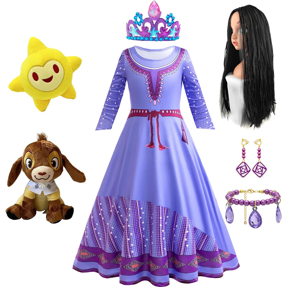 Wish Asha 3D Print Dress Halloween Party Long Sleeve Princess Costume 3-10 Yrs Kids Cartoon Role Playing Outfits New Arrival