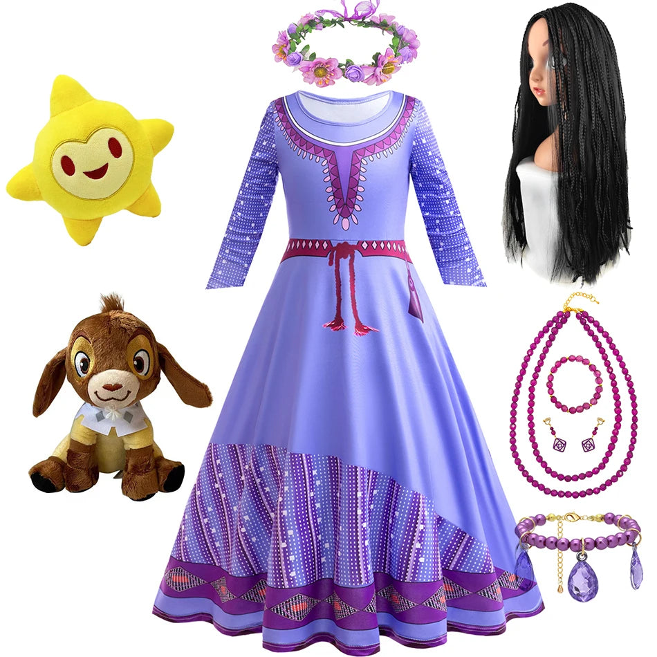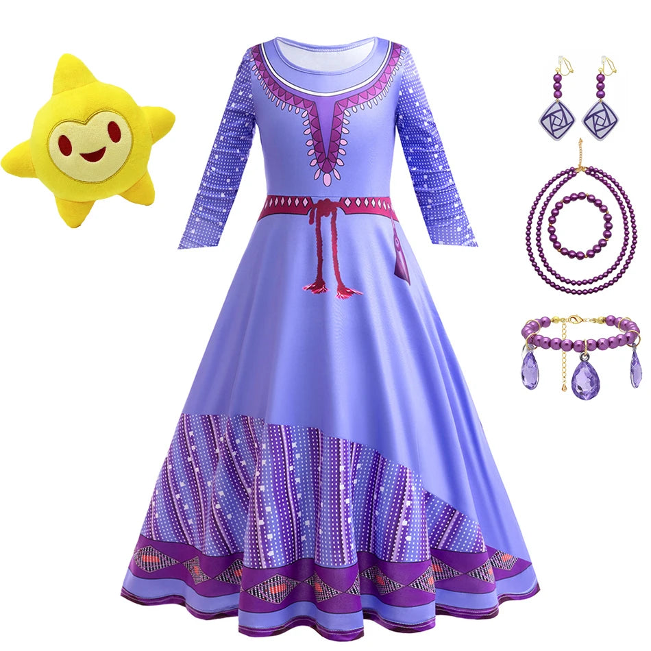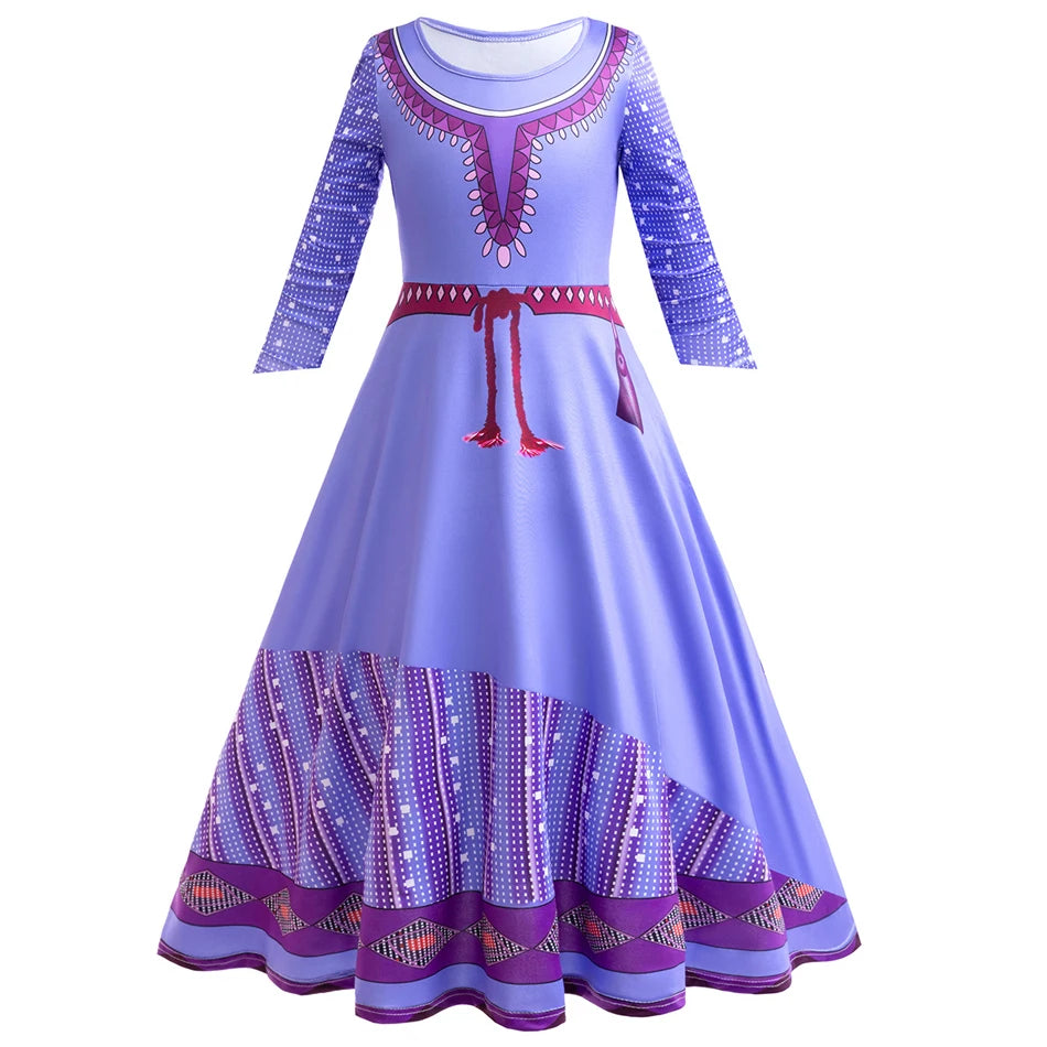 Wish Asha 3D Print Dress Halloween Party Long Sleeve Princess Costume 3-10 Yrs Kids Cartoon Role Playing Outfits New Arrival - www.sixcolors.us