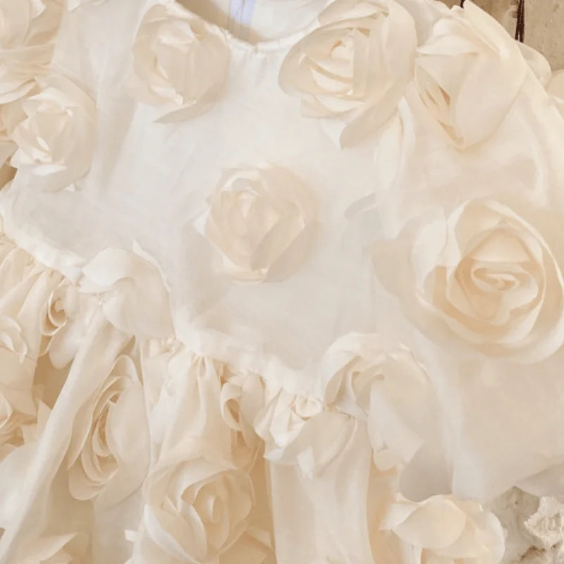 Fashion Baby Girl Princess 3D Flower Dress Infant Toddler Child Bow Vestido Short Sleeve Party Birthday Frock Baby Clothes 1-10Y