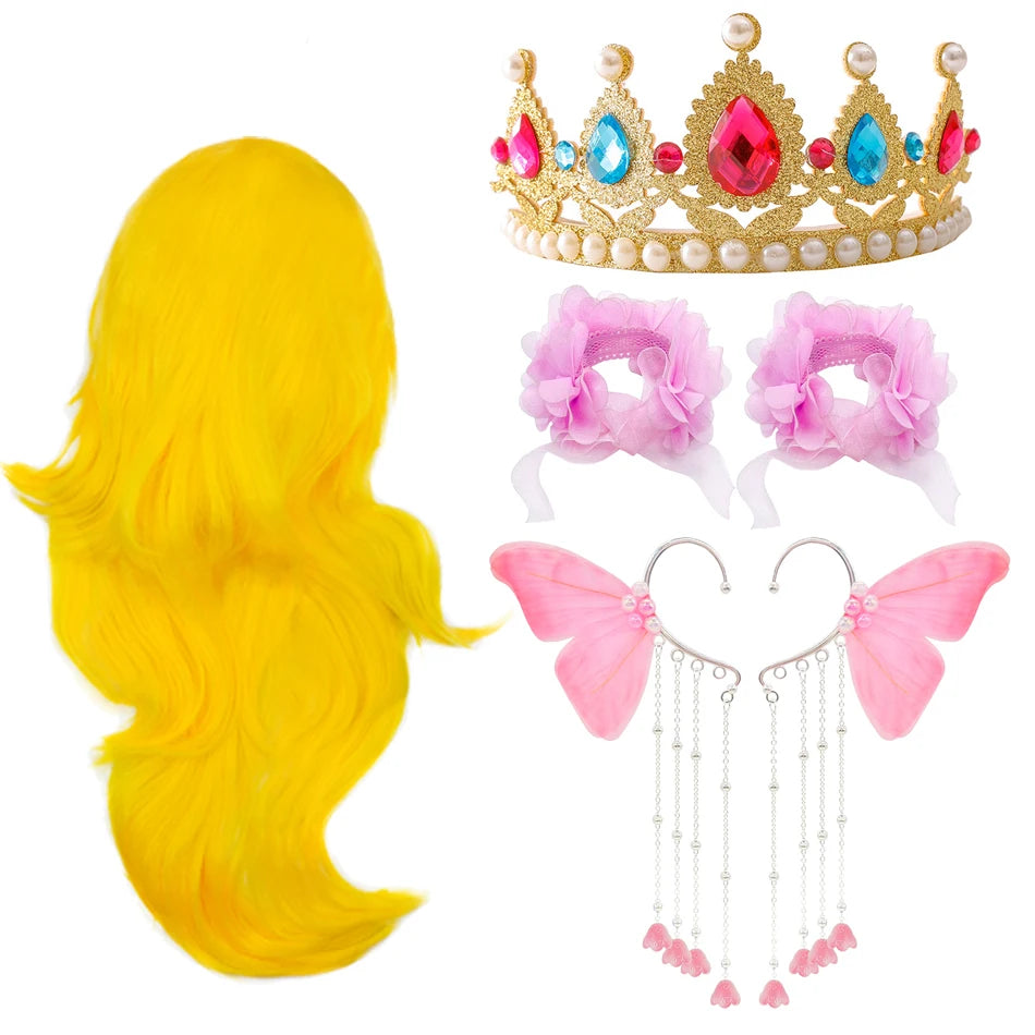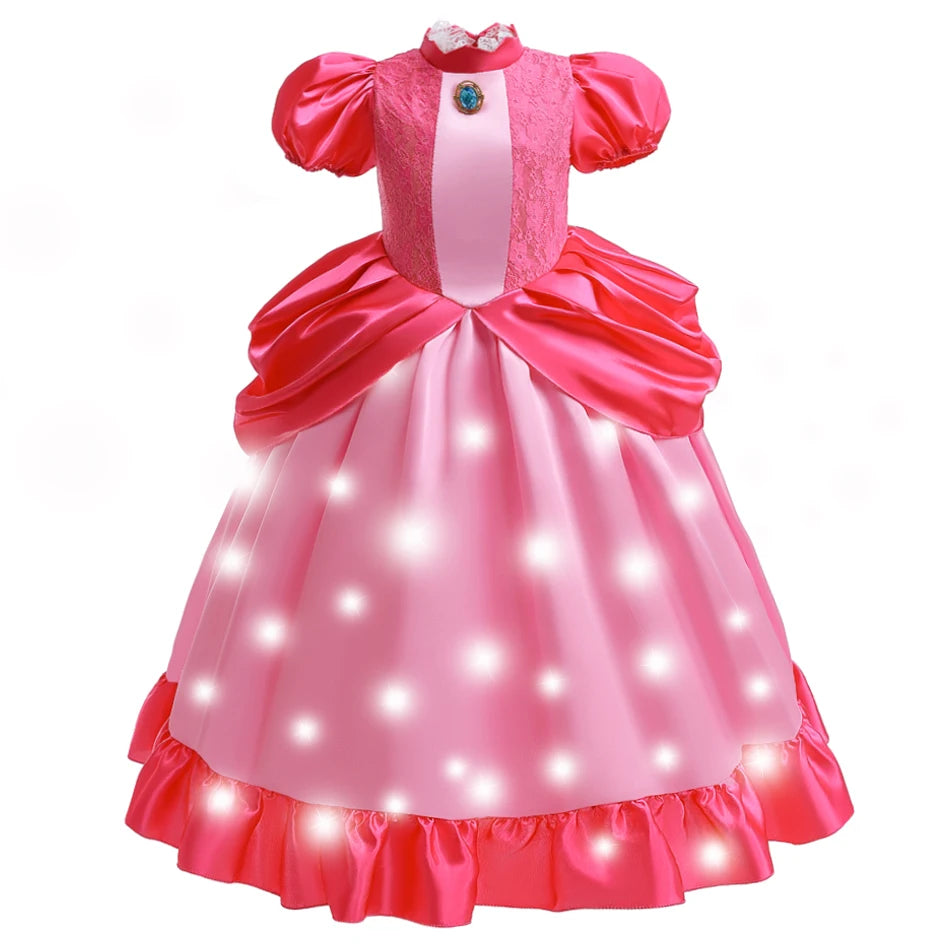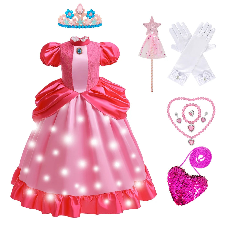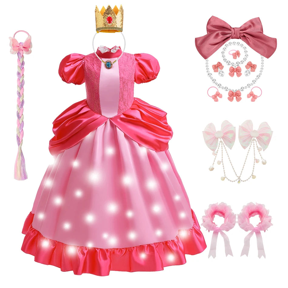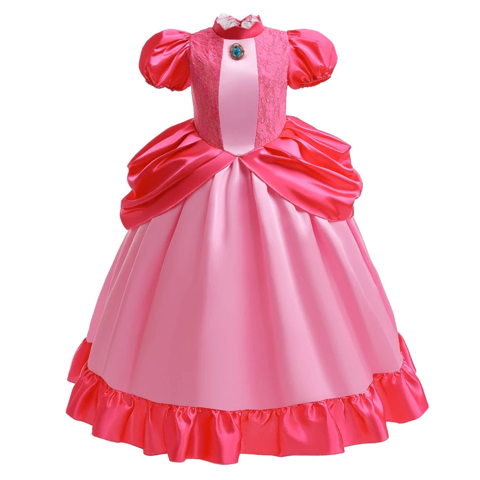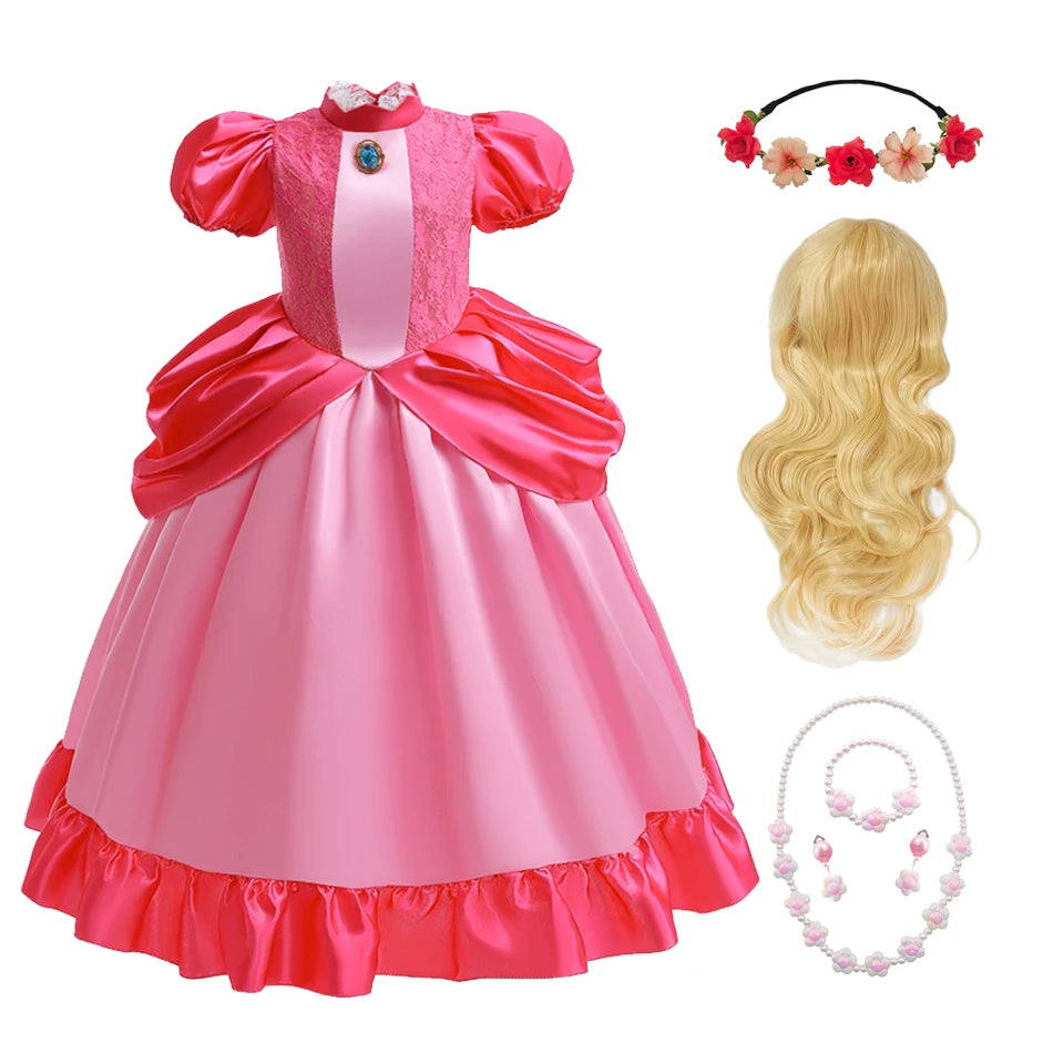 Girls Peach Princess Dress Halloween Cosplay Costume Children Cosplay Party Super Bros Plumber Clothes Birthday Party Outfits