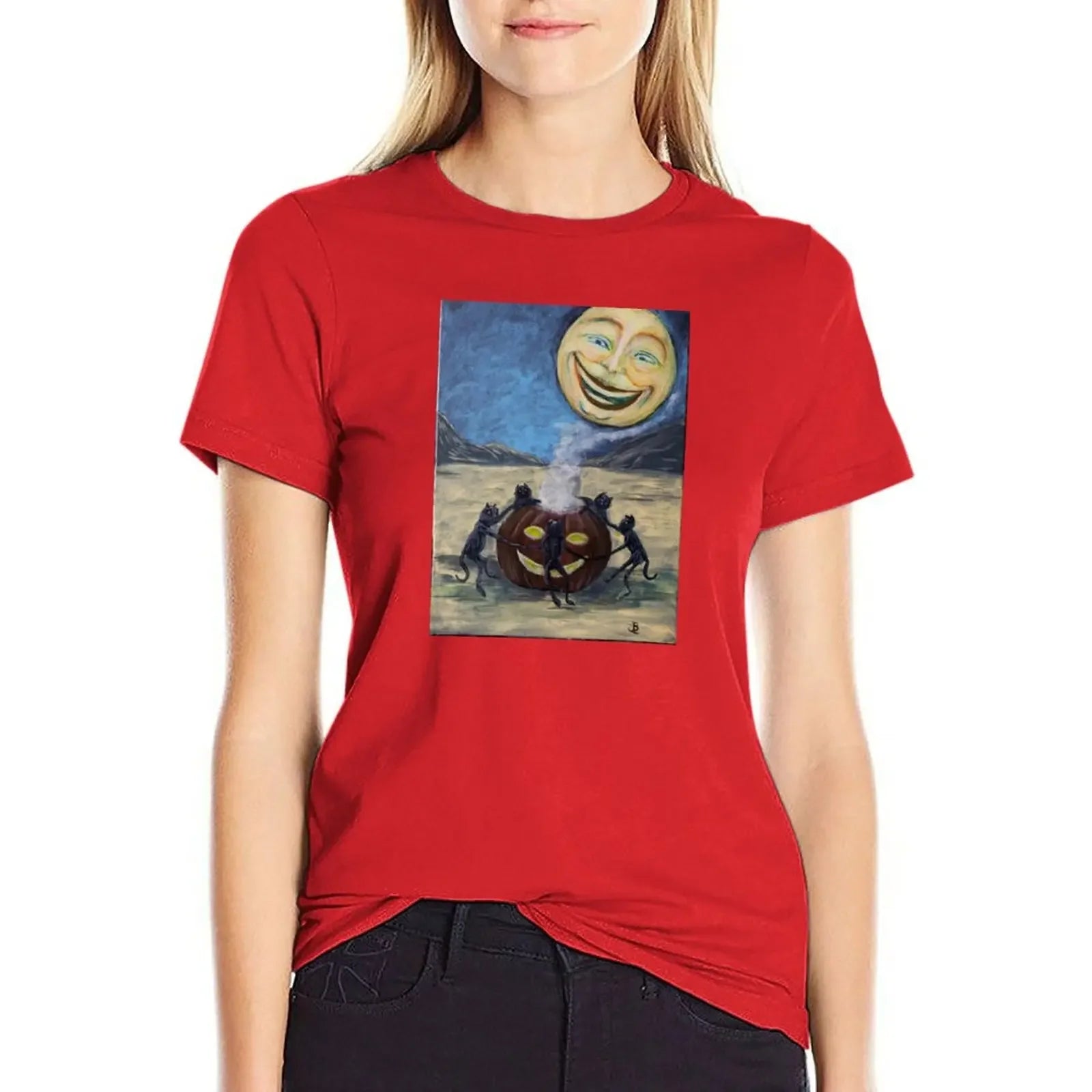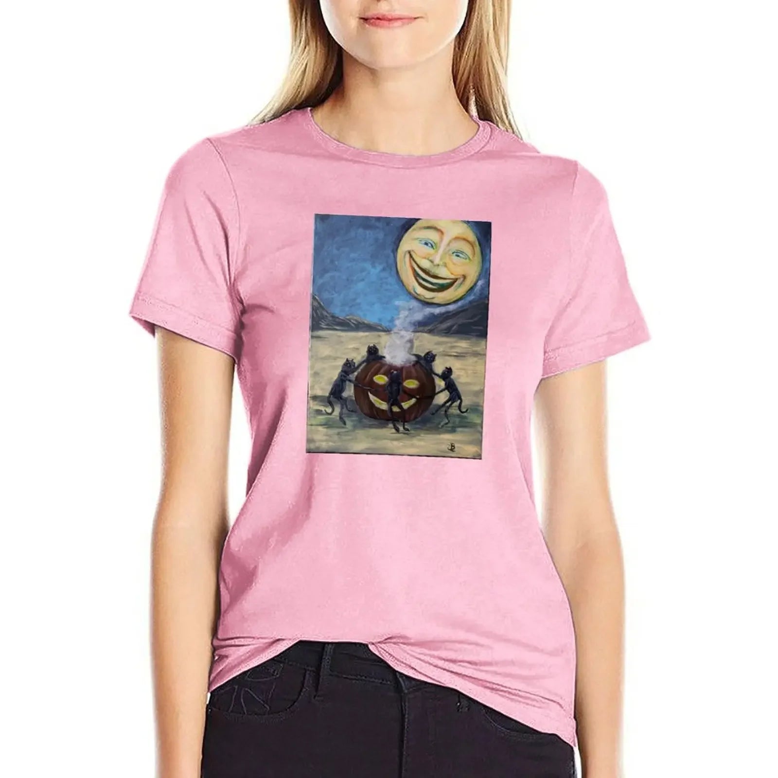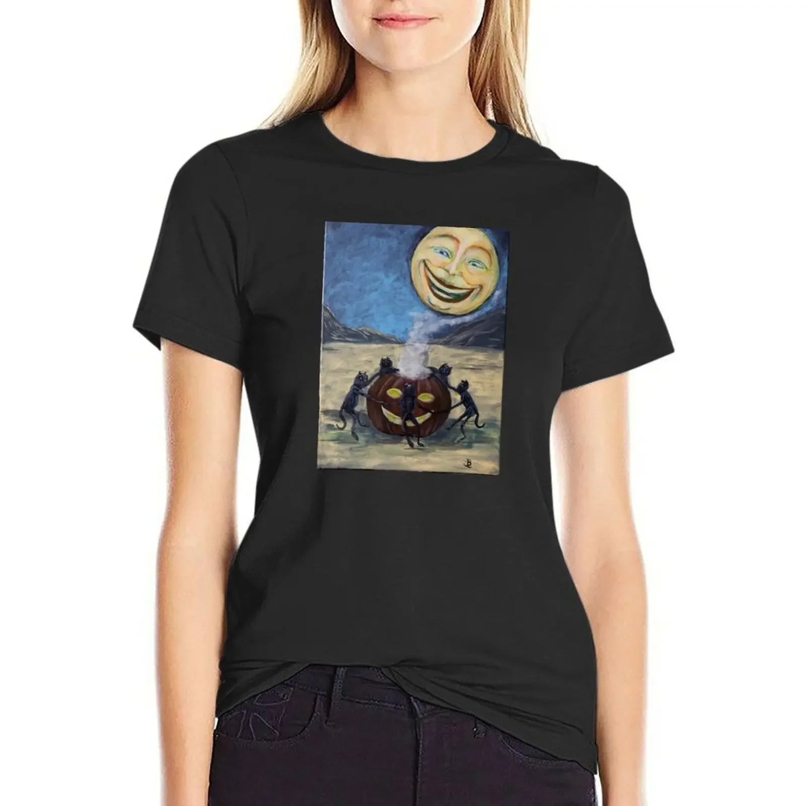 Halloween Cat Ritual T-Shirt vintage clothes kawaii clothes aesthetic clothes T-shirt Women