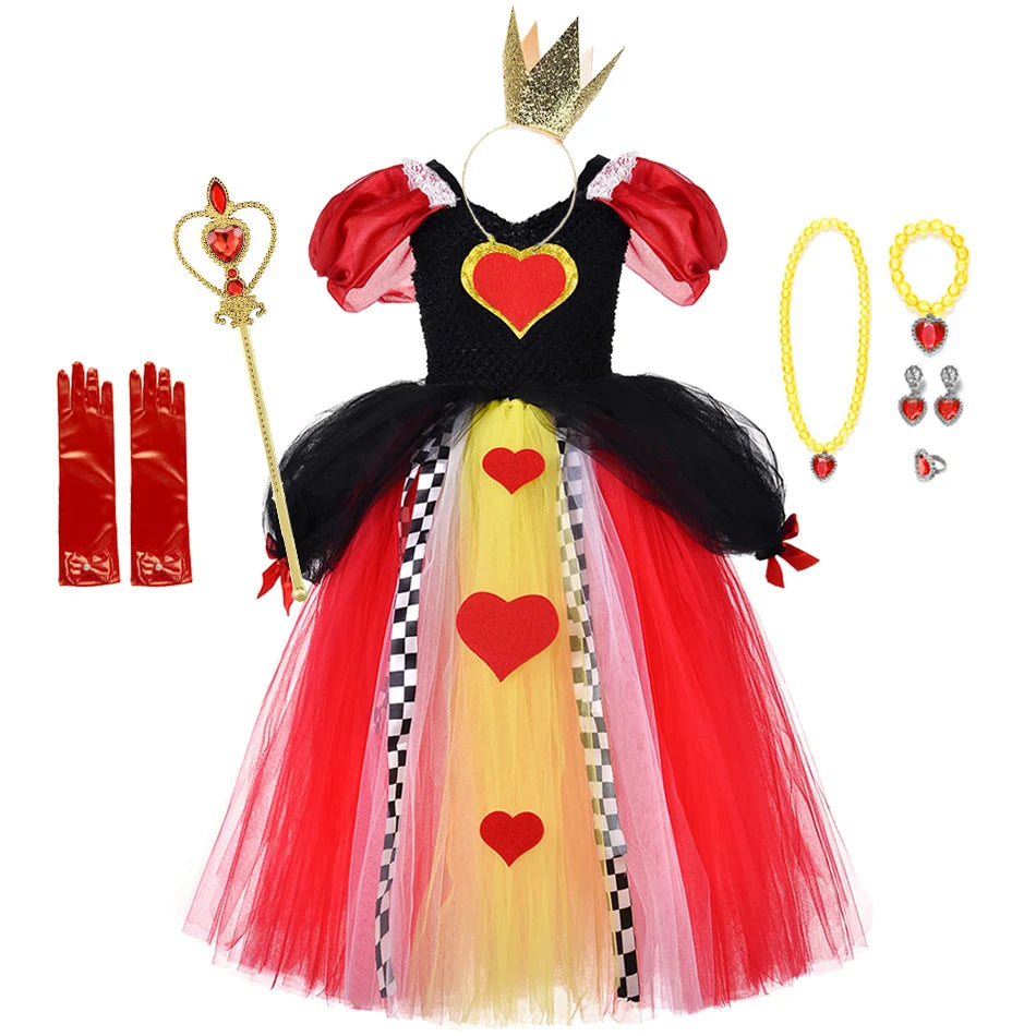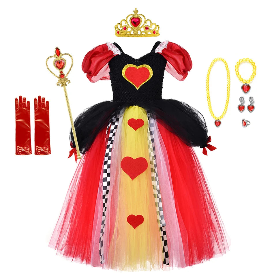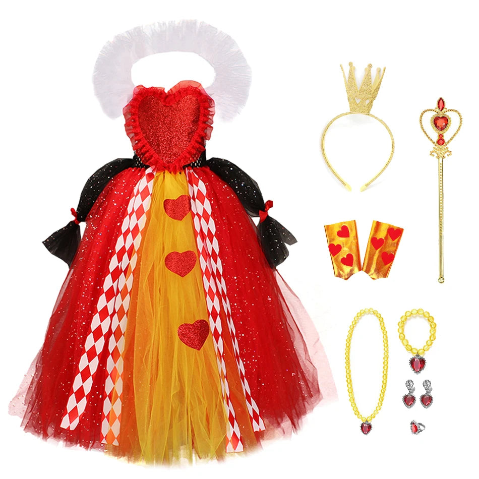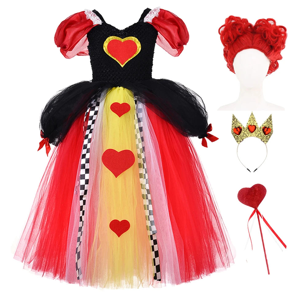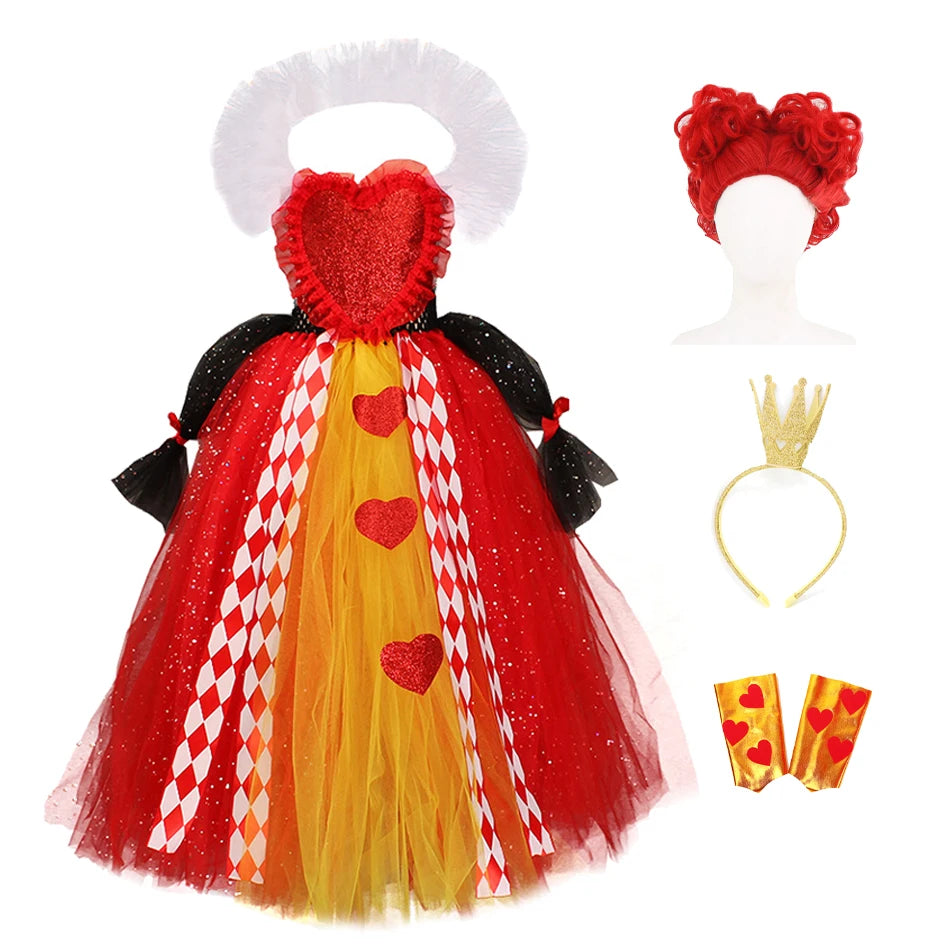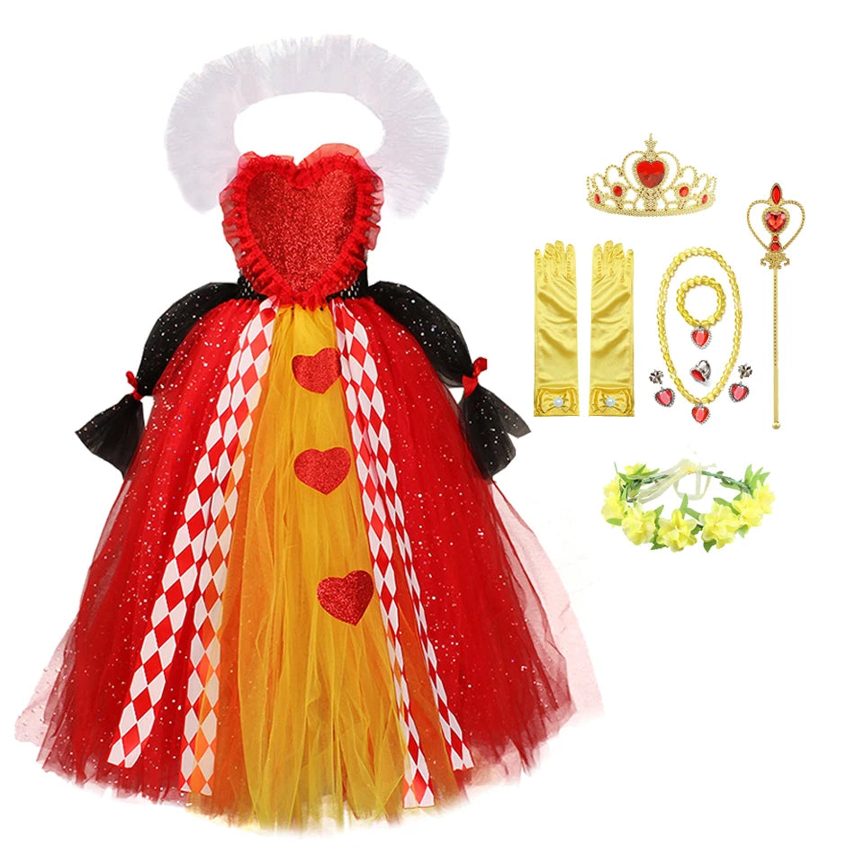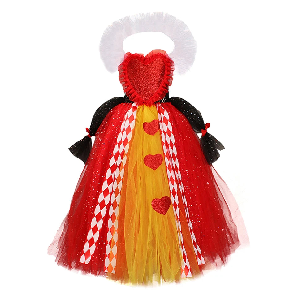 Kids Girl The Red Queen Halloween Cosplay TUTU Dress Party Carnival Princess Clothing Alice in Wonderland Christmas 2-10T
