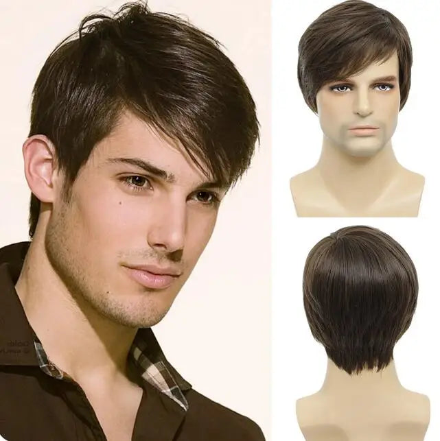 Mens Brown Wig Straight Short Mens Wig Realistic Natural Male Side Part Wigs for Halloween Men Man - www.sixcolors.us