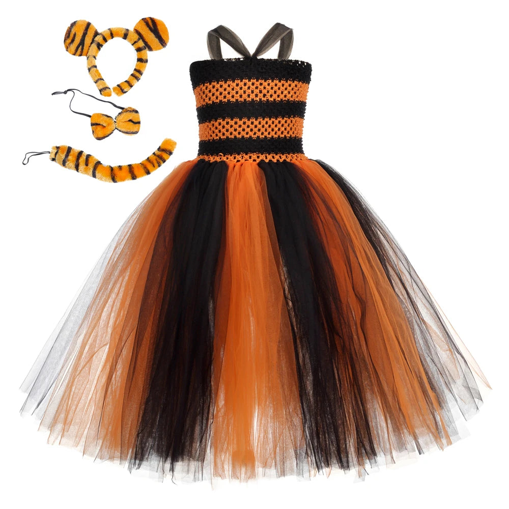 Color: Orange Black Tiger Tutu Dress for Girls