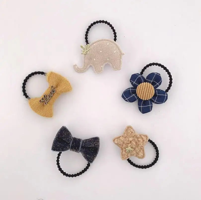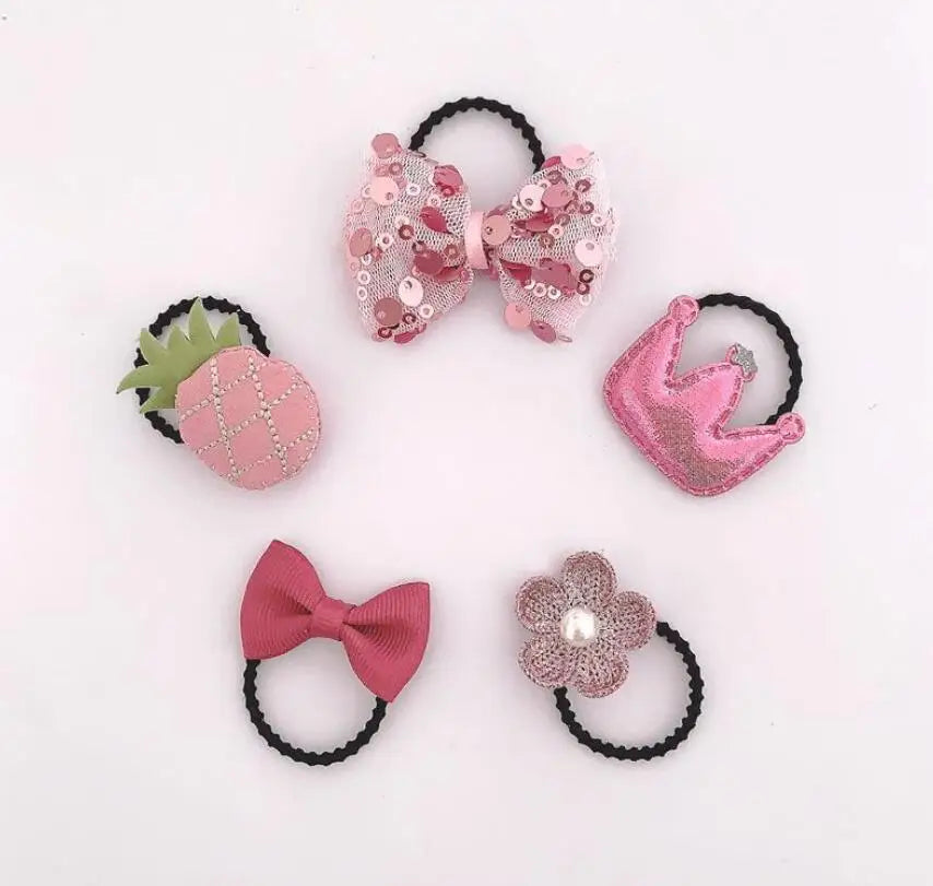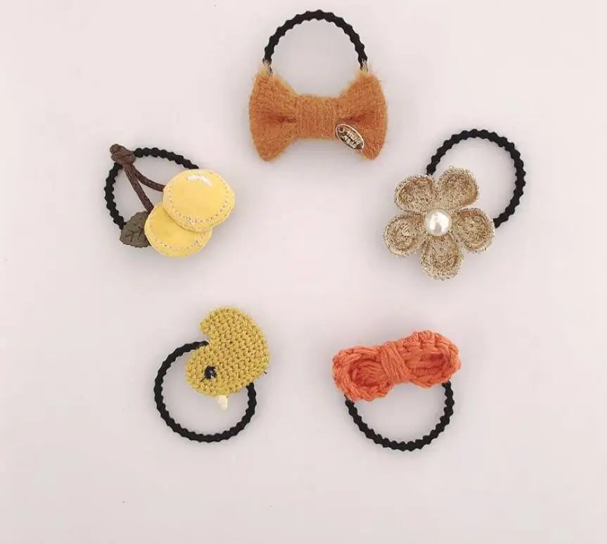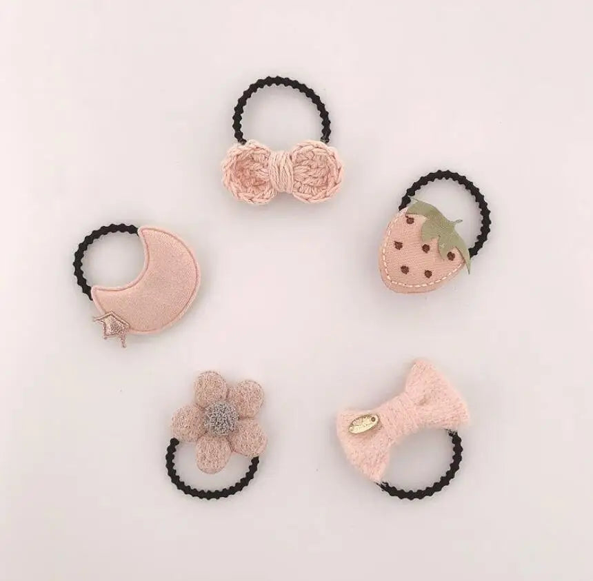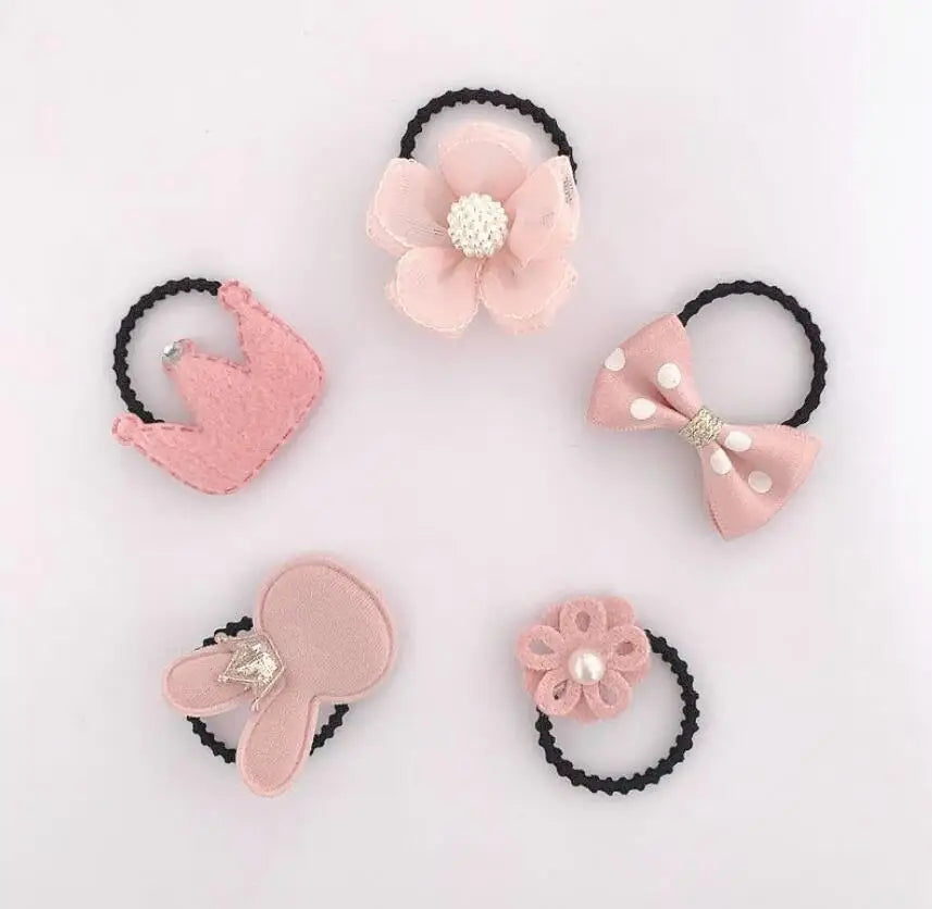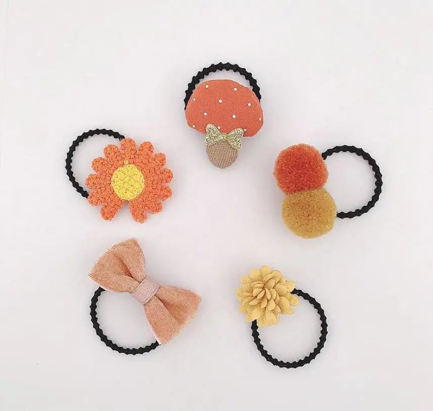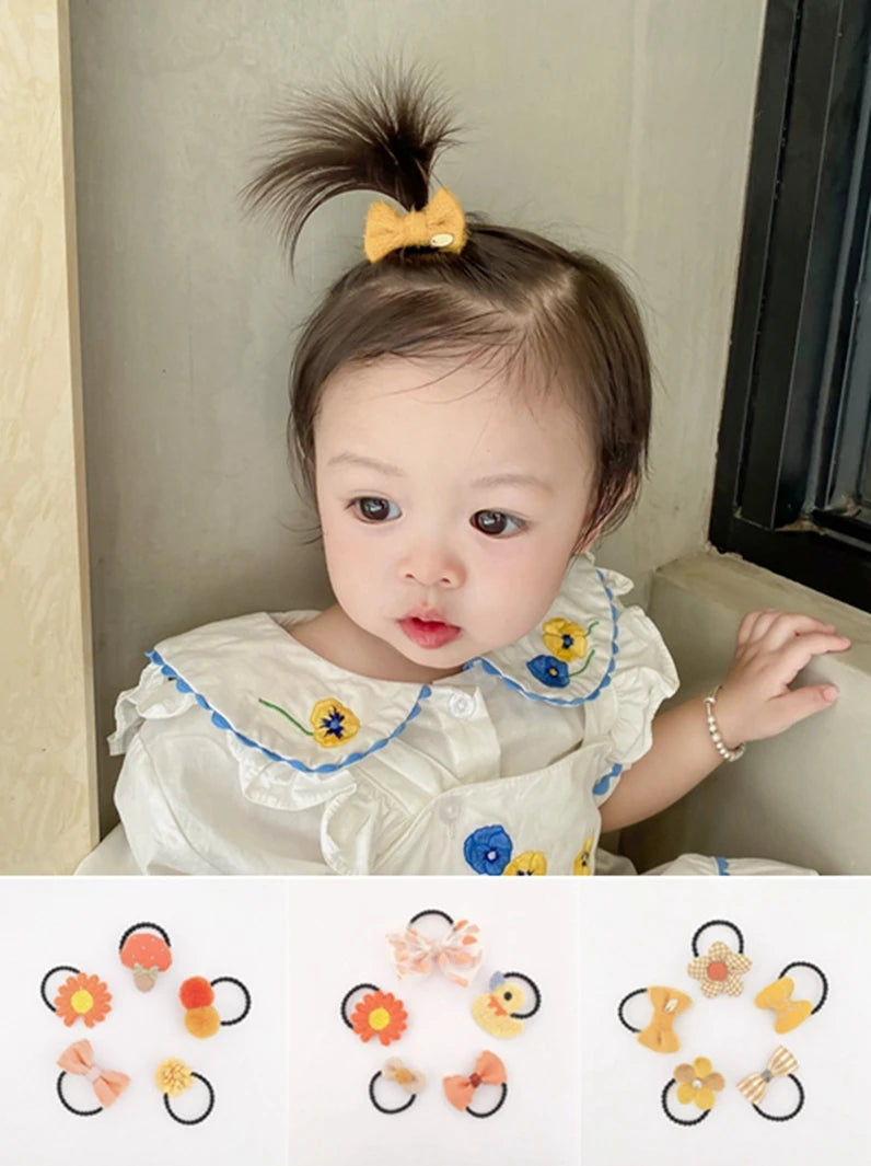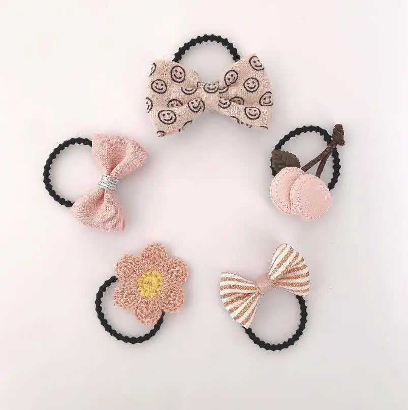 Baby Girls Elastic Hair Bands 5pcs/bag Small Flower Hair Ties Rope for Kids Todderls Bows Scrunchies Girls Hair Accessories