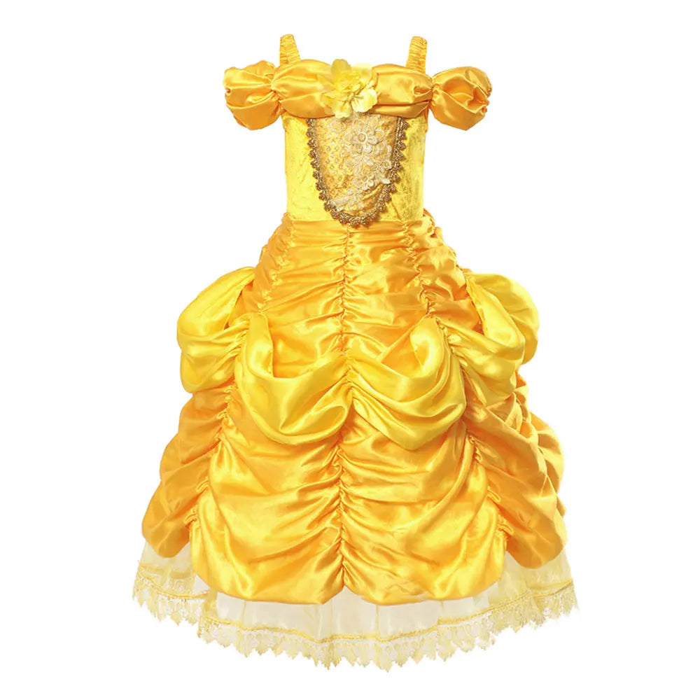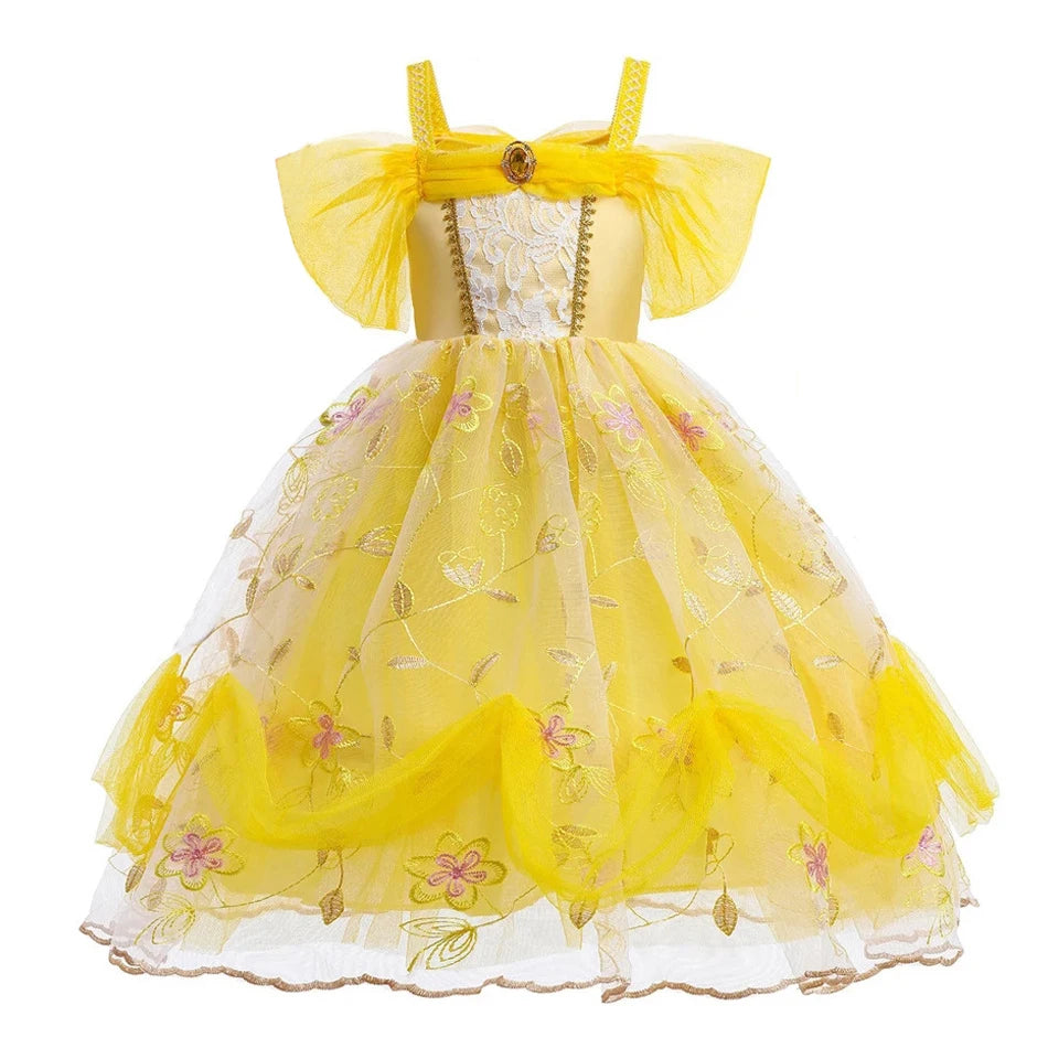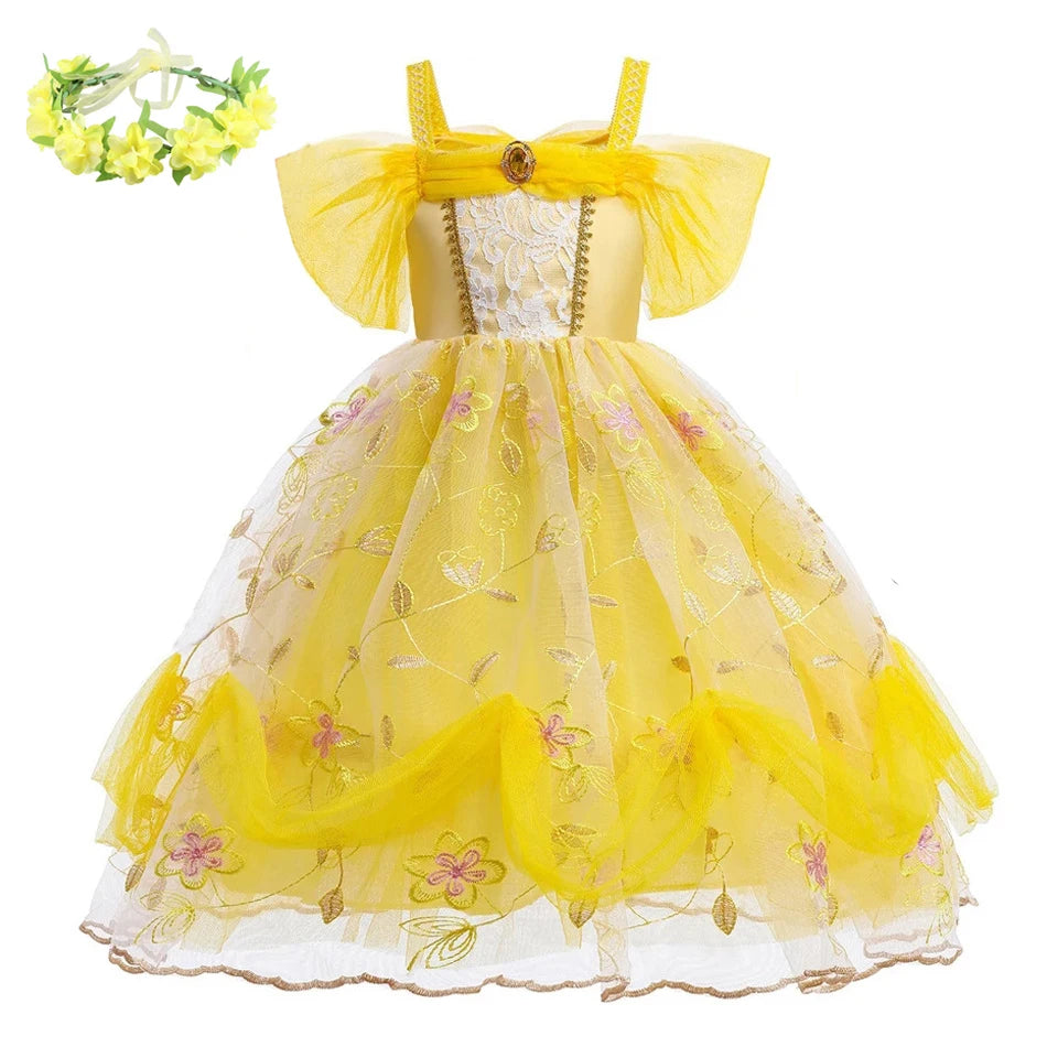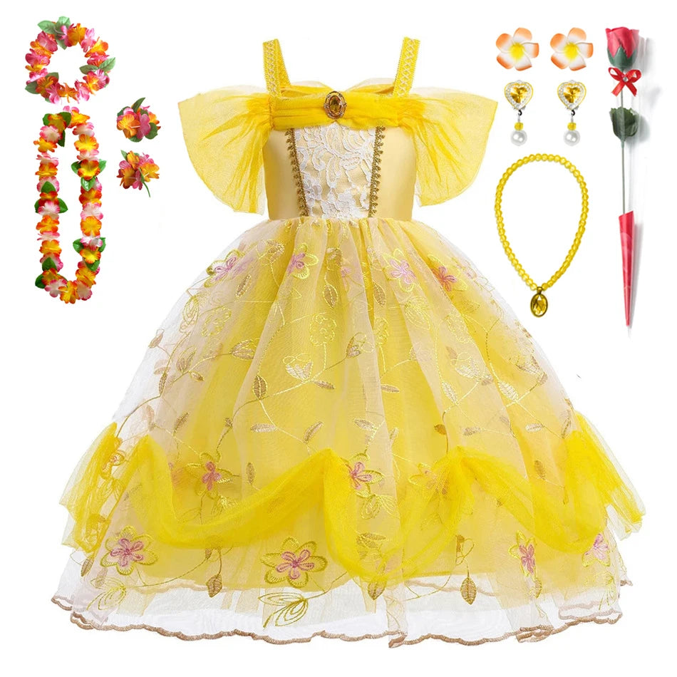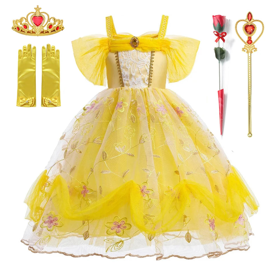 Disney Belle Princess Dress for Girl Kids Floral Ball Gown Child Cosplay Bella Beauty and The Beast Costume Halloween Party