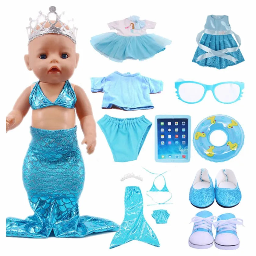 Doll Clothes Aqua Blue Series Disned Elsa Dress Shoes Mermaid Swimsuit For 18Inch American Doll Girl&43Cm Baby New Born Kids Toy