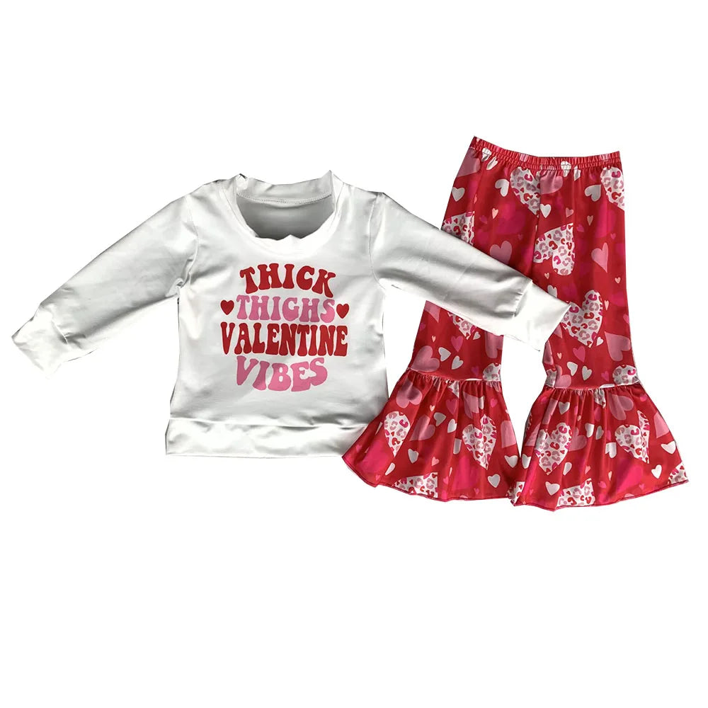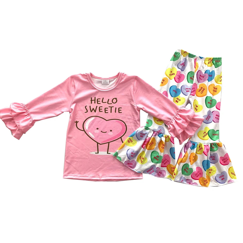 Valentine’s Day Kids Girl Clothes Set Newborn Infant Outfits Long Sleeve Children Letter Sweatshirt + Flare Pants Clothing