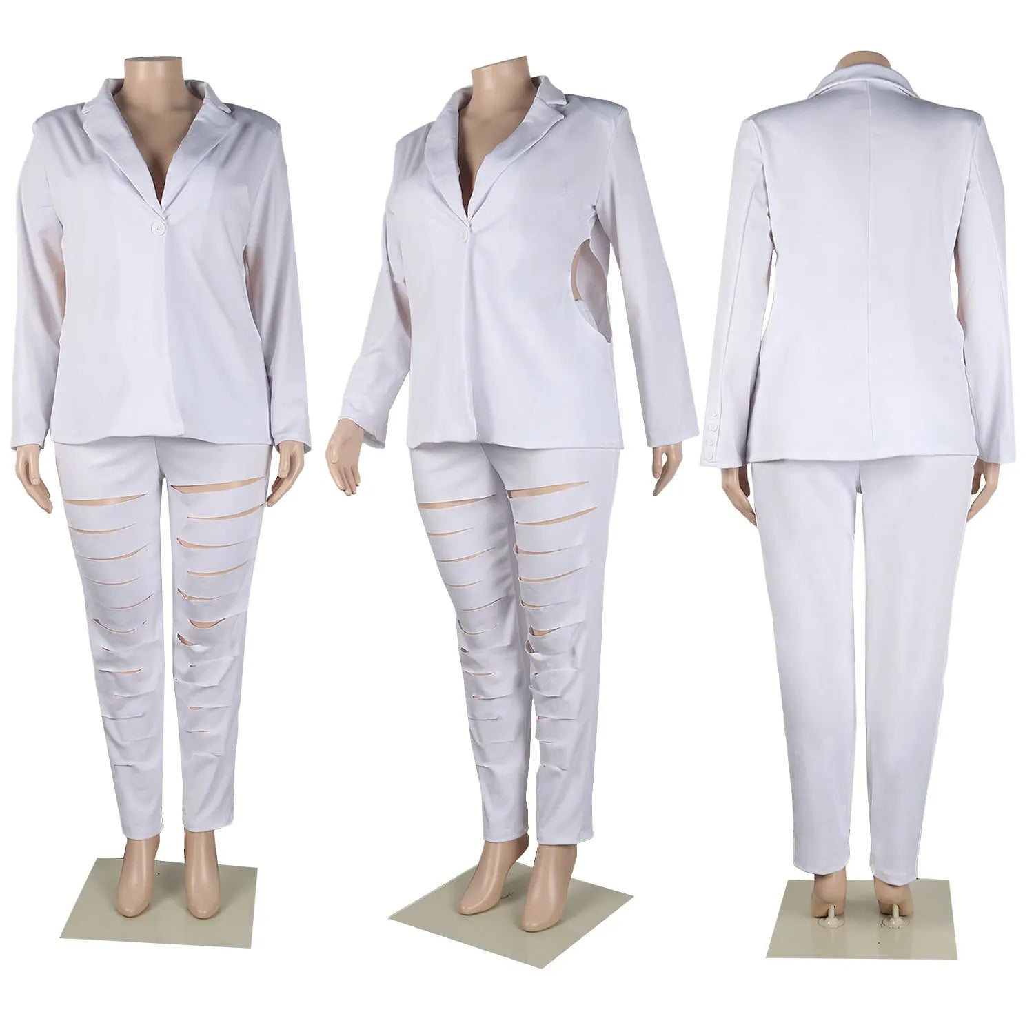 Plus Size Hollow Out Matching Set Women Solid Suit Jacket Female Winter Pencil Pant Lady Elegant Outfit Two Piece Pant Set - www.sixcolors.us