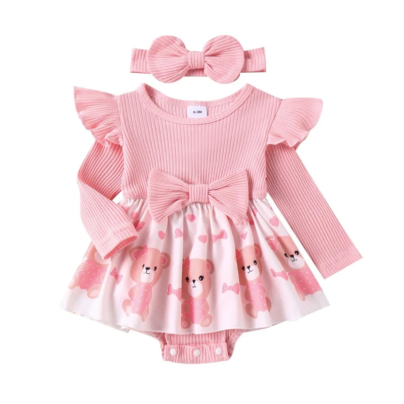 Valentine s Day Baby Girl Cute Outfit Heart Print Ruffled Bowknot Bodysuit Romper Jumpsuit Infant Clothes